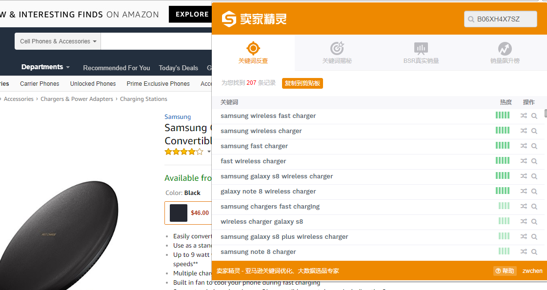 卖家精灵插件,目前支持关键词反查和关键词揭秘。