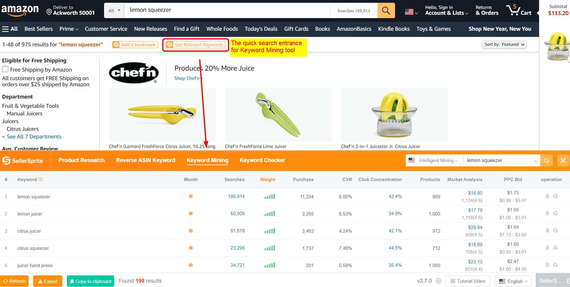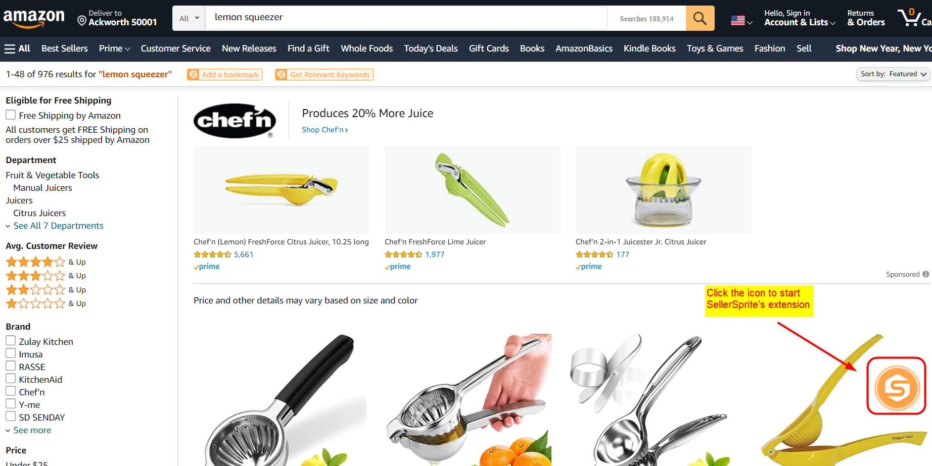 2.Click the SellerSprite icon can activate SellerSprite’s extension as you browse on the Amazon page.